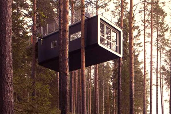Dieses Baumhaushotel hat kaum Auswirkungen auf seine Umgebung. Es betreibt seine Fußbodenheizung durch Wasserkraft und seine Toiletten sind energieerzeugend.