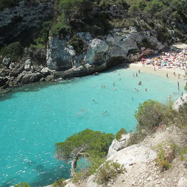 Auf Ibiza ist Cala Conta zwar kein Geheimtipp mehr, aber trotzdem eine der wunderschönsten Buchten. Das türkisblau leuchtende Wasser ist kristallklar. Besonders der von Sanddünen gesäumte Streifen ist für Kinder sicher. An dem von Felsen gesäumten Strand lässt sich außerdem gut schnorcheln. Ein dritter Strandstreifen ist über die Klippen erreichbar. Der Blick auf die vor der Küste liegenden Inseln ist zwar verlockend, trotzdem sind sie selbst für geübte Schwimmer unerreichbar. Wer am frühen Morgen oder späten Nachmittag kommt, findet deutlich mehr Platz. Viele Menschen kommen extra erst dann, wenn die Sonne untergeht.